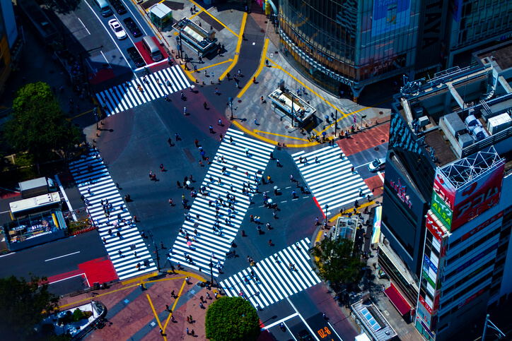 (2)たくさんの人が行き交っている昼間のスクランブル交差点